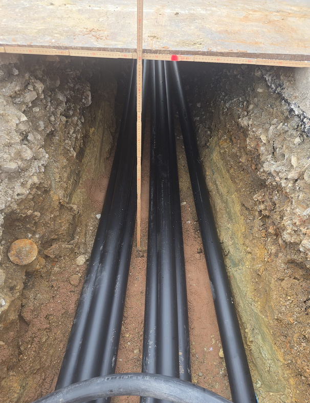 Verlegung von Abwasser-, Regenwasser- und Versorgungsrohren.